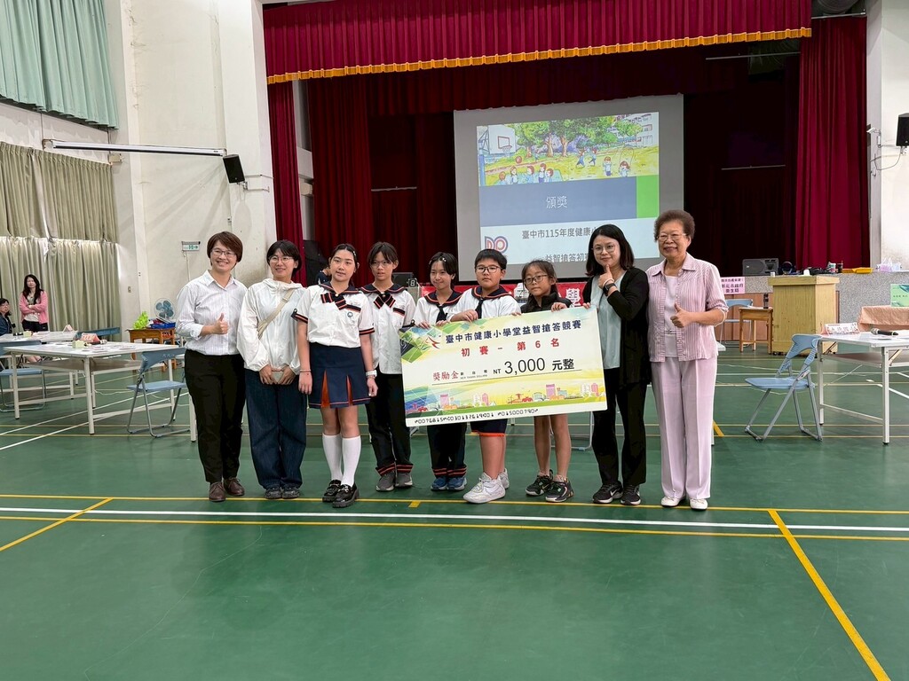 今日(3/24)本校學生參加115年度臺中市健康小學堂益智搶答屯區初賽榮獲第六名,獎金3000元! 感謝芷瑜老師利用午休及課餘時間,除了加強學生的健康相關常識外,還要訓練搶答技巧與反應,經過將近三個月的集訓,才能獲得如此佳績!
