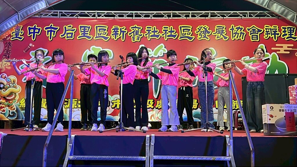 后里區新舊社社區發展協會「元宵節晚會」於2/28(六)熱鬧登場,七星國小長笛隊也帶來精彩表演。 學生們在舞台上隨著悠揚的旋律吹奏出輕盈的樂章,展現平日在校認真學習、課餘時間勤奮練習的成果,觀眾在溫馨的燈火與樂聲中,感受到濃濃的節慶氛圍,不時報以熱烈掌聲。 此次演出不僅豐富了晚會內容,也為學生留下難忘回憶。