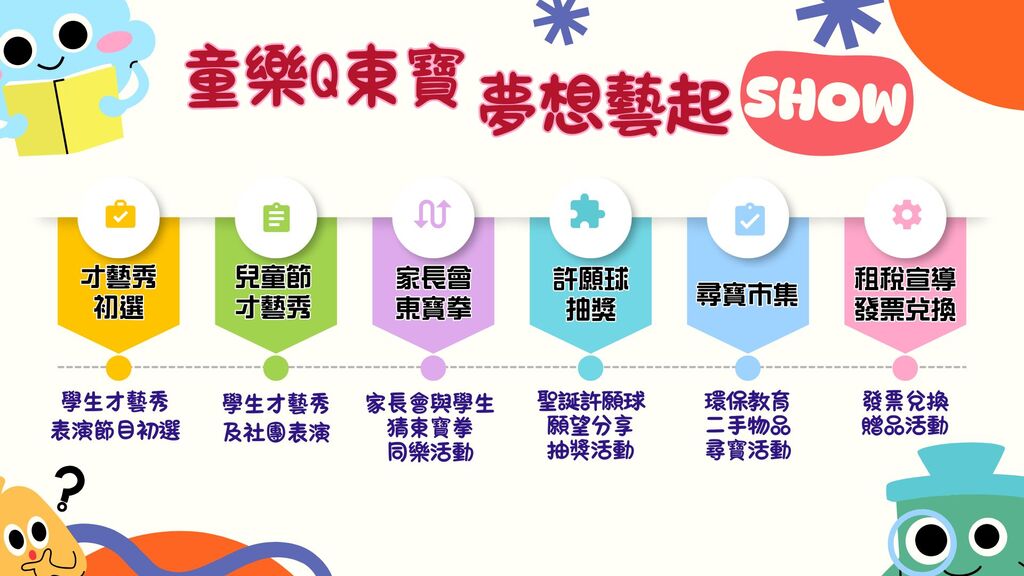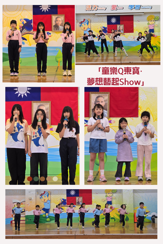 為歡慶兒童節的到來,讓孩子們在充滿歡笑與夢想的氛圍中度過專屬節日,本校舉辦兒童節系列活動,配合即將到來的80週年校慶,以「童樂Q東寶‧夢想藝起Show」為主題,結合學生才藝表演、學校特色團隊與社團成果展示,讓全校師生共同感受節慶的溫馨與活力,展現孩子們的創意與自信風采。