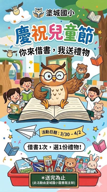 閱讀是開啟孩子探索新世界的一把鑰匙。期盼透過這項寓教於樂的獎勵活動,吸引更多學生主動走入書香世界,在字裡行間培養豐富的想像力與學習力。校方也藉此充滿巧思的活動,誠摯祝福全校學童「兒童節快樂」,願每一位塗城小讀者都能在書本的陪伴下,收穫滿滿的智慧與成長喜悅!