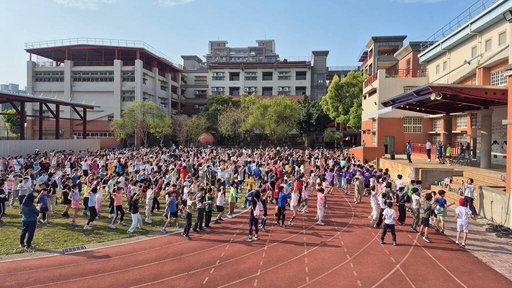 活動開始,由體育組俊淇老師帶領全體師生與家長進行暖身操,鼓勵大家在跑步前做好身體準備,以安全又愉快的方式完成挑戰。