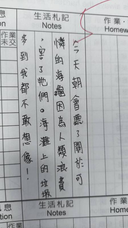 本場講座在週一的八點開講,感謝講師六點多就從板橋出發,呈現震撼的海洋塑膠污染事實。希望減塑的種子在大家心裡發芽茁壯。活動隔天,國三的導師分享聯絡簿上學生聽了演講的想法回饋,種子已經在發芽了!