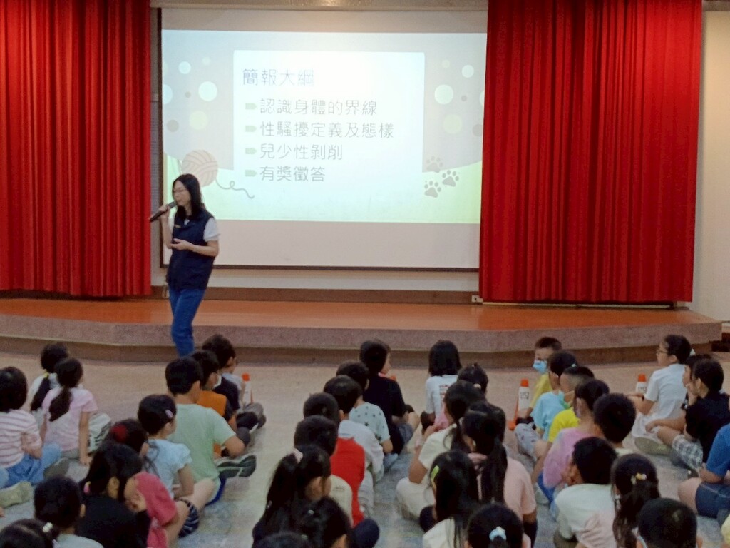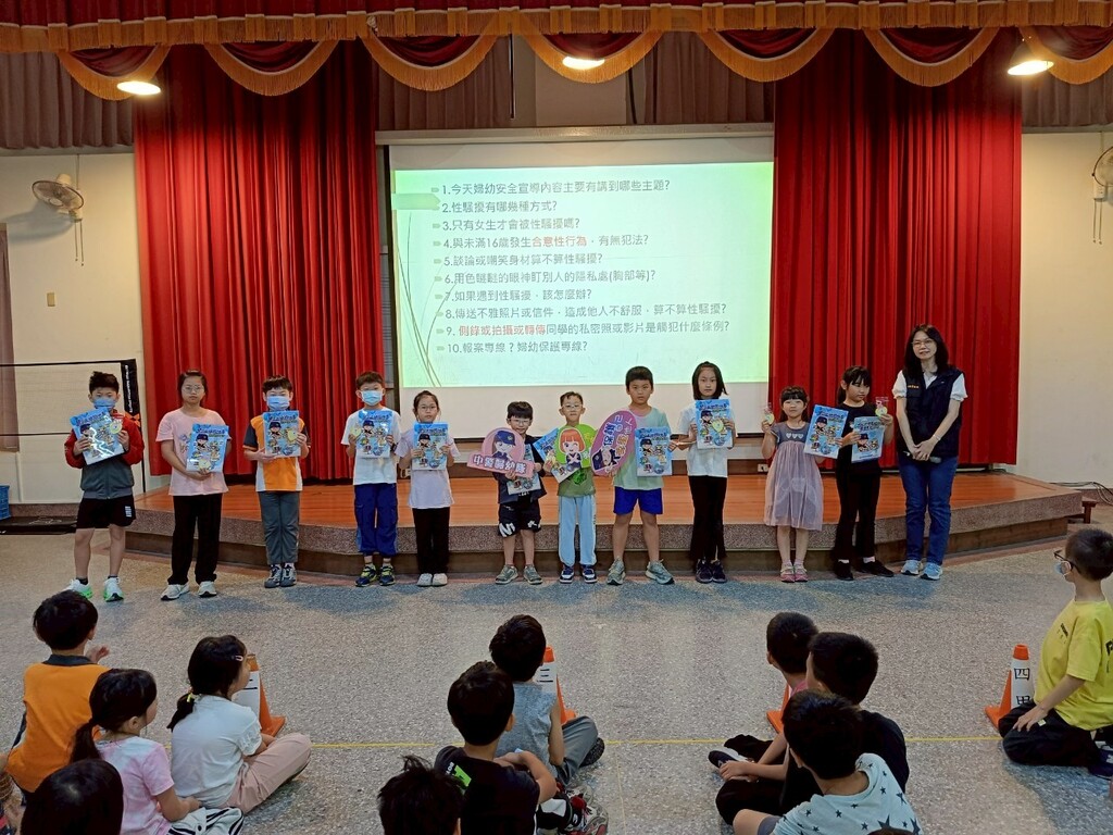 活動中,婦幼警察隊警員透過實際案例與影片分享,向孩子說明生活中可能構成性別事件的行為,並且引導孩子理解身體自主權的意義,強調「尊重自己,也尊重他人」的重要性。透過有獎徵答與情境討論,孩子們更加清楚在面對不適或疑似不當情況時,應勇敢拒絕並即時向師長或相關單位求助。