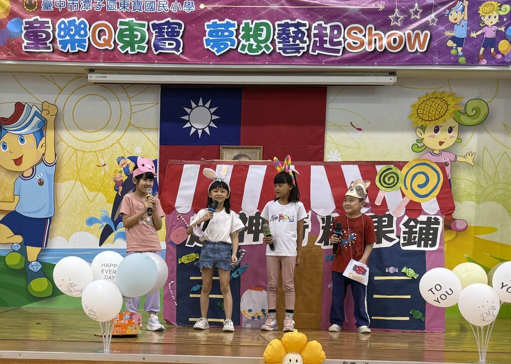 為歡慶兒童節的到來,東寶國小配合即將到來的80週年校慶,以「童樂Q東寶‧夢想藝起Show」為主題,辦理學生才藝Show表演活動,每個東寶的孩子勇敢表現自我才華,樂於面對挑戰,而本校直笛隊、流星球隊、電子鼓社團及扯鈴社團也帶來專業且精湛的表演,內容豐富多元,才藝秀活動結束後緊接著辦理環保教育二手物品尋寶及租稅宣導發票兌換活動,藉由多元活動讓孩子從做中學、玩中學,激發潛能,讓每個東寶孩子都能在快樂中學習、關愛中健康成長。