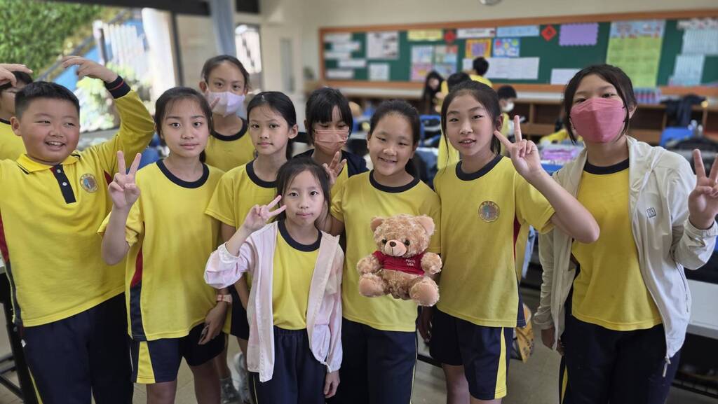 五年級的子綺興奮地說:「哇~好可愛的小熊!我們要和美國小學交流嗎?好期待喔!」一句簡單的話,流露出孩子們對世界的好奇與期待。