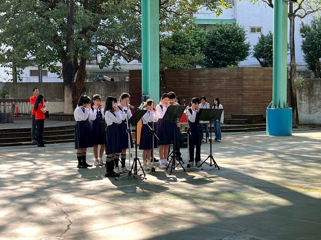 活動由本校舞獅隊精彩開場,小朋友們精神抖擻、鼓聲震撼,熱鬧喧騰,為典禮揭開序幕;中場兩次表演則由口琴社全國比賽團隊擔綱,分別吹奏「青春修煉手冊」及「心願便利貼」,悠揚動人的旋律在風雨操場,不僅展現學生音樂素養,也為活動增添濃厚的藝術氣息。表演結束後,社團指導老師張甫行老師捐贈口琴社75吋數位電視、學生家長捐款1萬元給口琴社以更新設備,也有學生家長協助更換擴音設備電池。十方善念,匯聚一堂。