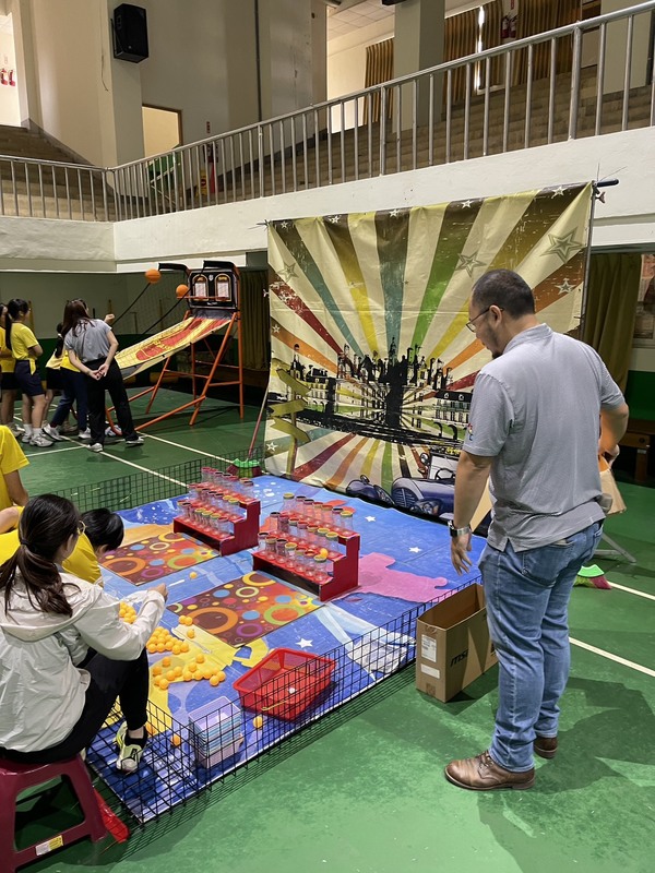 現場設置多項富有挑戰與趣味的闖關遊戲,包括考驗手眼協調的「手撥彈珠台」、緊張刺激的「乒乓球跳跳樂」、讓人屏氣凝神的「電流急急棒」、趣味十足的「吊酒瓶」、需要團隊默契的「軌道運球」,以及活力滿點的「雙人投籃機」。每一關都讓孩子們玩得不亦樂乎,笑聲洋溢整個校園。