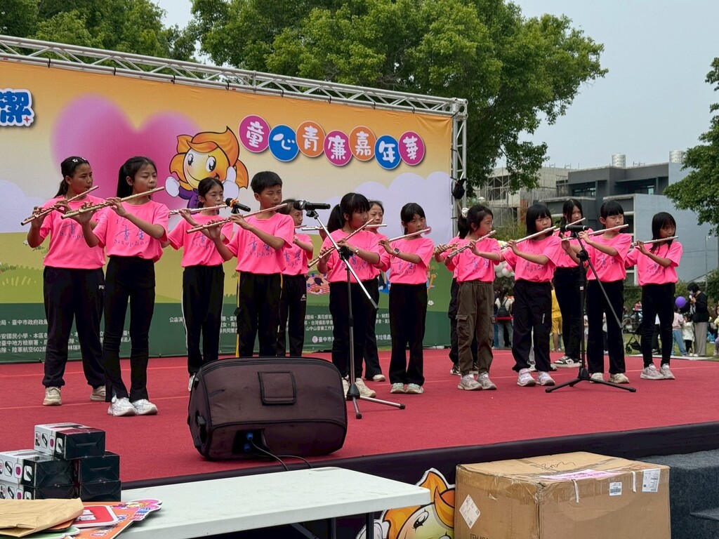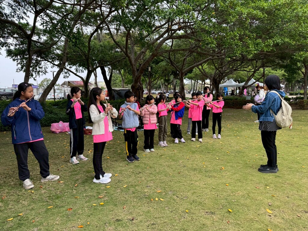 ★七星長笛社團於3/28(六)在后里森林公園「童心青廉嘉年華」活動中精彩登場,孩子們隨著優美旋律合奏〈向星星許願〉、〈小小世界〉與〈哆啦A夢〉曲目,展現出穩定的節奏感與絕佳默契。從容自信的舞台表現,不僅體現平日扎實的練習成果,更讓現場觀眾留下深刻印象,贏得熱烈掌聲。