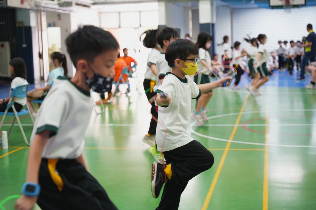 首場賽事由一至四年級的小朋友率先帶來競爭激烈的跳繩比賽。參賽學童個個卯足全力,不僅展現了平日體育課與課間練習的扎實成果,更藉由跳繩這項全身性的運動,有效提升了身體的協調性與肌耐力。賽場上學童們活力四射,場邊加油聲此起彼落,氣氛相當熱烈。