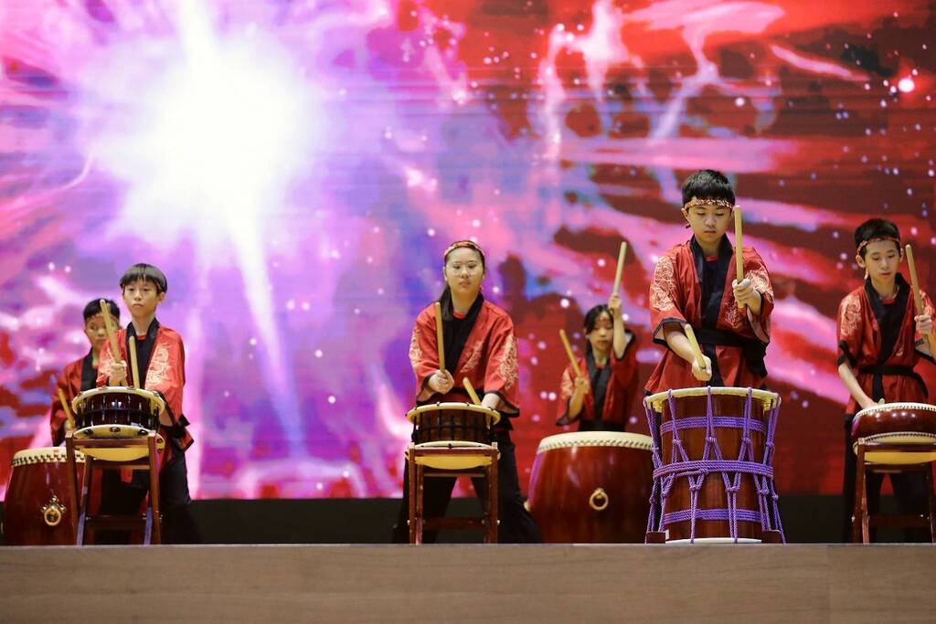 臺中市惠文國小於兒童節當天盛大舉辦才藝表演活動,全校師生齊聚一堂,在歡樂與掌聲中展現學習成果與多元才華。其中,六年一班帶來的太鼓演出《童心協心齊鼓共鳴》,氣勢磅礡、節奏分明,成為全場矚目的焦點,充分展現學生團隊合作與藝術素養的結晶。