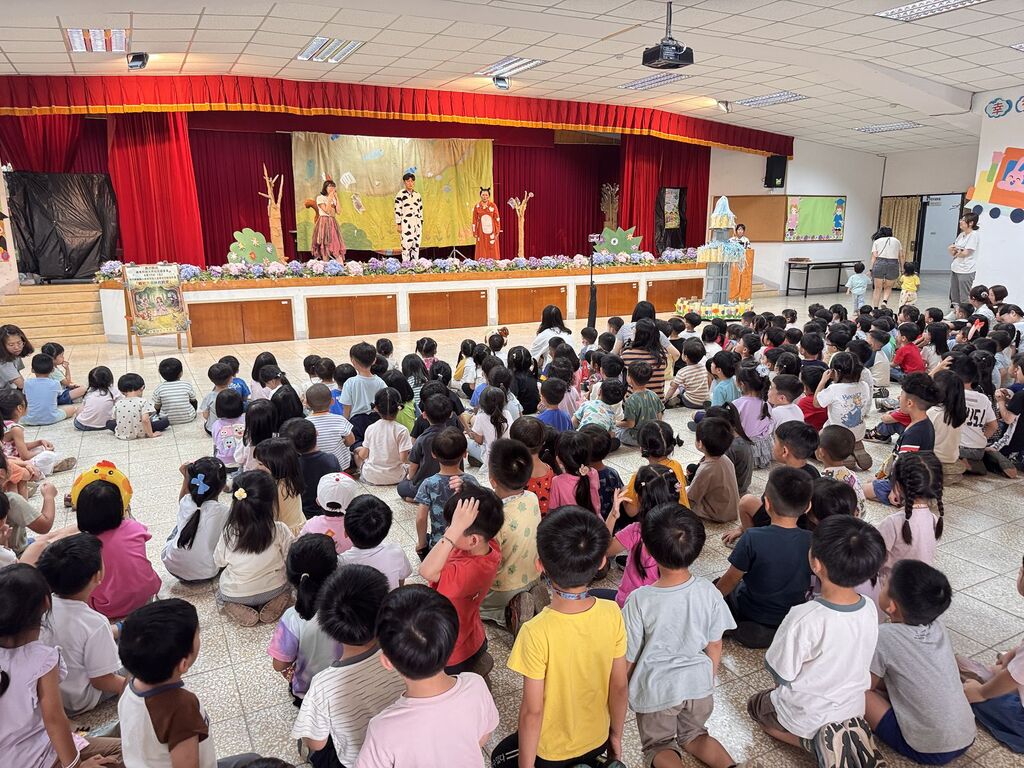 南屯幼兒園今(17)日迎來一場充滿歡笑與內涵的精彩演出,特別邀請嶺東科技大學幼兒保育系的大學生哥哥、姐姐們,蒞園進行兒童戲劇公演。全園十四班師生齊聚大禮堂,孩子們一早便滿心期待,帶著興奮的心情等待活動開始,整個會場洋溢著熱鬧又歡樂的氣氛。活動一開始,由六位青春洋溢的美少女姐姐登場,隨著輕快的音樂節奏帶領大家一起律動。姐姐們活力十足的舞蹈與燦爛的笑容,迅速拉近與孩子們的距離,也讓現場氣氛瞬間升溫。孩子們跟著音樂擺動身體,有的揮舞雙手、有的開心跳躍,笑聲此起彼落,為整場活動揭開充滿活力的序幕。