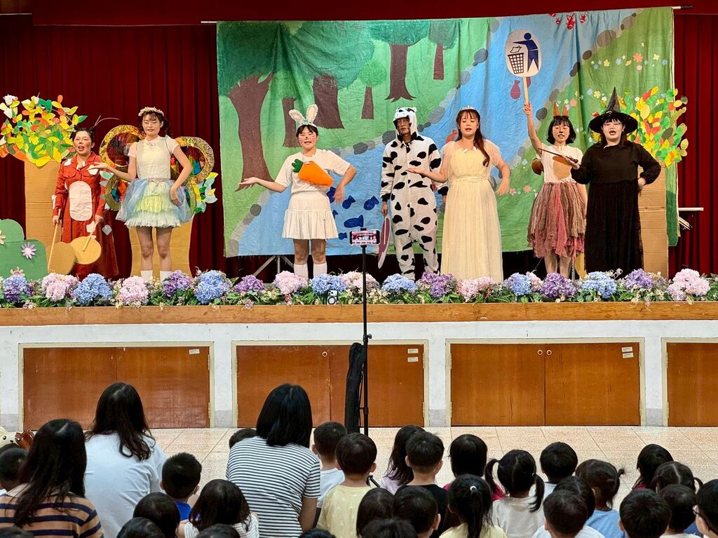 隨著大家齊心協力整理,森林逐漸恢復原本的乾淨與美麗,小動物們也重新找回快樂的生活。而孤單的巫婆在大家的關懷與包容下,也慢慢打開心房,學會與他人相處,故事在溫馨與和解的氛圍中畫下完美句點。這樣的結局不僅帶來感動,也讓孩子們理解到友誼與關懷的重要。演出結束後,全場響起熱烈掌聲,孩子們用最直接的歡呼與笑容表達對演出的喜愛與感謝。隨後,師生們也把握機會,與參與演出的哥哥姐姐們一同合影留念。孩子們開心地站在演員身旁,有的模仿角色動作,有的露出燦爛笑容,為這段難忘的時光留下珍貴紀錄。山羌班幼生葉軒銘說:「我覺得今天表演好好看,也告訴我們不能亂丟垃圾,要愛護環境。」白鼻心班幼生李子悅說:「覺得表演的哥哥姐姐很厲害,表演很好看、很精彩。」瓢蟲班蔡丹桂老師說:「今天的兒童劇表演真的很精彩又有活力,看完還想看第二場。孩子們都看得非常投入,也從故事中學習到要愛護地球、一起做環保,是一場既好看又有意義的表演。」