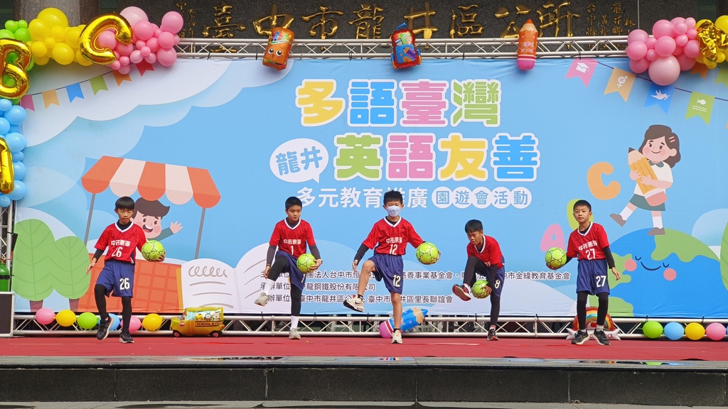 2026-01-15 西屯區 東海國小 教務主任張凱棠 報導點閱數:68 次教學活動12 月 27 日上午,一年一度的龍井區雙語成果展熱鬧登場。「多語臺灣、英語友善」龍井多元教育園遊會於龍井區公所舉行,吸引近兩千位民眾共襄盛舉,也成為檢視一年來雙語教學成果的重要舞台。本次活動集結龍井區九所學校與西屯區東海國小,共同展現推動雙語教育的豐碩成果。 東海國小亦特別受邀參與成果展演,由 郭蕙瑜老師、張雅喬老師 帶來享譽臺中的讀者劇場表演,學生透過生動的語調與肢體動作,自然展現英語表達能力,獲得現場觀眾熱烈掌聲;同時也由 謝茲倫老師 指導學生帶來充滿活力的「雙語足球 SHOW」,結合運動與英語指令,展現東海國小將雙語學習融入生活與課程的教學特色。 活動期間,東海國小也設置闖關體驗攤位,包含 Cool English AI 口說英語挑戰、互動式英語問答「Where are you going?」以及胸章壓印手作活動,吸引許多家長與孩子熱情參與。透過遊戲化與科技輔助的設計,讓雙語學習變得有趣又親近,也讓民眾實際感受到東海國小推動雙語教育的用心與成果。