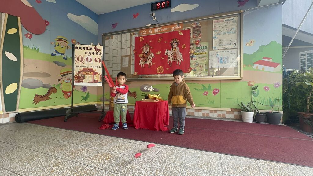 2026-01-15 南屯區 南屯幼兒園 陳議濃 報導點閱數:146 次教學活動日前迎來2026年,許多地方紛紛舉辦新年活動。不論是熱鬧的慶祝儀式,或是靜態的感受體驗,大家都期盼在新的一年能夠擁有良好的運勢與滿滿的福氣。而在南屯幼兒園,每一年新年都會設計不同的跨年小儀式,從2023年的「敲響新年鐘」、2024年的「祈願納福箱」、2025年的「蛇年投金珠」,每一次的變化,都為孩子與家長帶來不一樣的新鮮感與樂趣。今年當然也不例外,學校特別為新年準備了全新的創意活動儀式─2026年的「新年好運籤」,開啟了別具特色的新年氛圍。 這個構想不僅僅是一項入園的節慶佈置,更是一場充滿許願意涵與文化元素的體驗活動。首先,在正門中央設置了一座高大宏偉的大門,兩側由石獅子坐鎮,展現出磅礴氣勢;大門一旁,還擺放著象徵新年的大鈴鐺,輕輕一拉便響起清脆鈴聲,寓意轉運迎福,以愉悅的心情迎接嶄新的一年。再往前走,映入眼簾的是由吉祥物「鯪鯉」化身而成的男女福神,象徵喜迎孩子們開心上學;而在其前方,則擺放著大籤桶、數十支幸運籤,以及一對特別製作的大型手縫筊杯,作為抽取新年幸運籤的重要媒介。 為了讓孩子們都能擁有新一年的希望,也親身感受這份獨特的文化氛圍,各班老師安排孩子們輪流體驗活動流程。孩子們先在裝滿幸運籤的大籤桶中,抽出一支與自己最有緣分的籤,接著擲出大筊杯;若出現笑筊或陰筊,便表示這支籤尚未被允許查看,需再重新嘗試,若擲出聖筊,則可以翻開籤文,一探今年的好運籤運。由於所有籤詩皆為吉祥祝福的內容,也讓孩子、老師與家長們都覺得既有趣又新奇,紛紛想親自體驗屬於自己的新年好運。 松鼠班幼生陳威禎開心地說:「我喜歡搏杯,而且一次就成功了,我很開心。」水獺班幼生胡旻祐也分享:「大家都抽到好籤,一起拍照,好運旺旺。」白兔班蘇怡嘉老師說:「為了迎接即將到來的農曆新年,學校舉辨「博筊」祈福活動,孩子一開始有點不太懂是什麼意思,在祈福活動開始前,我們一一和孩子們解說這個民俗活動的意義,並介紹相關的物品,如:筊、福籤…等,孩子們學習使用「筊」的時候,覺得很有趣,雖然他們還是看不太懂聖筊、笑筊、蓋筊,不過他們還是相當的投入在「搏筊」;「搏筊」後就是接著抽「福籤」,每一枝福籤上面都有一句吉祥話,孩子們看不懂福籤上的文字,但是當老師念出福籤上的文字時,孩子們聽到的時候都覺得很開心…,孩子在回程的路上說:祈福好好玩哦,會讓我的心情很開心,還可以抽到甜甜的祝福話。」 教務組長蕭文嘉說L:「新年新氣象,學校特別製作擲筊布娃娃,邀請師生一同體驗新年求籤活動。透過實際操作,孩子們不僅認識傳統華人求籤文化,也感受到擲筊過程中的樂趣。當孩子們擲出聖筊的那一刻,臉上充滿驚喜與成就感;再加上抽到象徵祝福的好運籤詩,讓整個活動更加有趣,也為新的一年增添滿滿的好運與期待。」園長陳議濃表示:「新年總是讓人充滿期待,今年的新年好運籤活動,不僅讓人莞爾一笑,更將祝福與文化巧妙融合在一項活動中,讓每一位看到的人都忍不住想試試自己的運氣。也期盼2026年,大家都能心想事成,平安幸福一整年。」