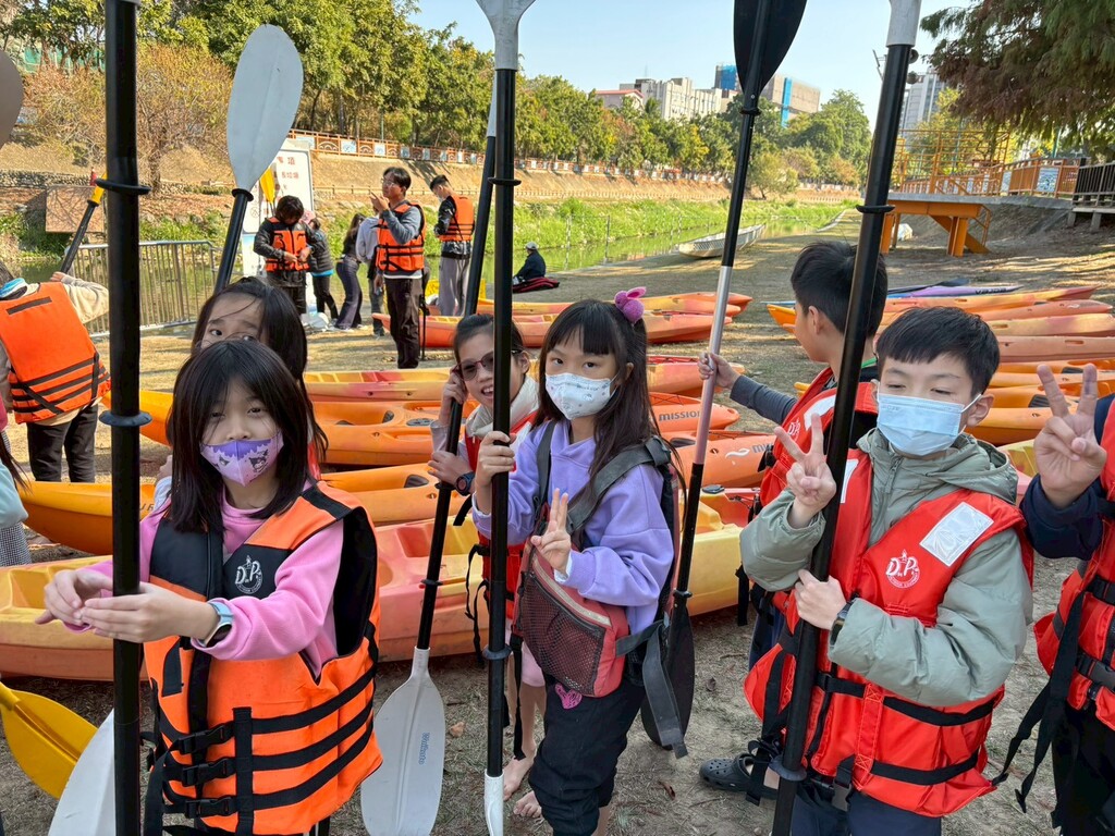 2026-01-29 西屯區 東海國小 教務主任張凱棠 報導點閱數:106 次教學活動冬令營進入最後一天,孩子們的學習旅程也從城市街區延伸到大肚山的另一端──康橋水岸。這一天,我們帶著學生用雙語走入自然,探索水岸生態,並挑戰第一次的輕艇體驗,為三天營隊畫上最充滿活力的句點。 抵達康橋水岸後,在教練的指導下,孩子們先學習水上安全知識,包括如何進行自救、穿戴救生衣、以及正確的拋繩技巧。接著,大家練習划槳,準備踏上真正的水上冒險。對許多孩子來說,這是第一次划輕艇──船身在水面上左右搖晃,有人緊張、有人興奮,也有人一開始就在原地打轉,引得隊友哈哈大笑。更有孩子忍不住把輕艇當成碰碰船,互相撞得樂不可支。過程中,學生邊划邊觀察沿岸景色,驚呼「原來台灣的河岸這麼美!」這一刻,自然環境成了最真實的雙語教室。 離開水岸後,第二站來到充滿復古氛圍的光復新村。這裡是台中著名的文創基地,也是許多劇組拍攝的熱門場景。孩子們漫步於老屋之間,彷彿走進偶像劇的鏡頭裡,不時停下來拍照、模仿電視劇的經典畫面。在參訪毛織工坊時,學生們試戴手工毛帽與圍巾,好奇地問老師:「這也是文創嗎?」老師也趁機介紹設計產業、工藝精神與在地創新,讓孩子發現「文化」其實就在生活周遭。 下午回到東海國小,我們安排了冬令營最後一項創作活動──胸章壓印。孩子們先構思自己的圖案,再將作品印製成專屬徽章。有人設計輕艇、有人成為藝術街的小導遊,也有人畫下三天營隊最難忘的瞬間。當孩子們拿到閃亮亮的胸章時,那份自豪全寫在臉上。 活動尾聲,Shari 老師與 Whitney 老師拿著情緒卡,詢問學生:“How do you feel today?” 孩子們紛紛舉起代表開心、興奮與感謝的表情牌,一邊笑一邊說:「我們還想再來一次!」 三天的冬令營雖然圓滿落幕,但孩子們在城市、自然與文化中的探索,才正準備展開。