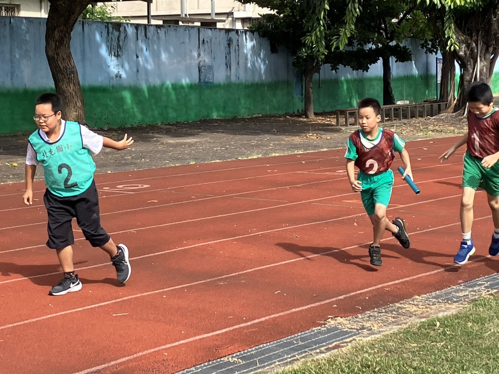 2025-11-11 北屯區 北屯國小 學務處 報導點閱數:128 次教學活動北屯國小運動會會前賽今天來到「400公尺四人接力」!參賽小朋友各個摩拳擦掌,奮力向前,賽事精彩可期!讓我們一起為選手加油! 接力賽跑屬於田徑運動的一類,為多人合作的徑賽項目。同隊選手之間以30厘米長的金屬圓棒為傳接工具,必須在接棒區內接棒。