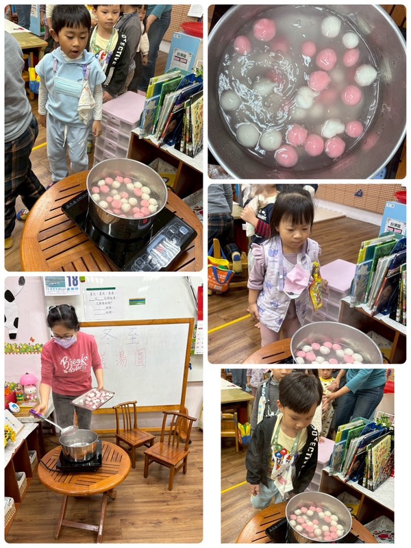 2025-12-22 沙鹿區 公明國小 幼兒園 林月惠 報導點閱數:136 次教學活動本校於冬至節慶期間辦理「冬至活動」,由老師透過故事分享與台語兒歌《冬至圓》,引導幼兒認識冬至的由來與文化意義。在輕快的念唱活動中,孩子們感受傳統節慶熱鬧且溫馨的氛圍,提升對在地文化的認同感。 活動中,老師示範將麵團置於手心,輕柔搓揉成圓形湯圓,並帶領幼兒一同觀察湯圓烹煮的過程。透過實際操作與觀察,孩子們在動手做的體驗中培養生活技能與專注力。 整個活動過程充滿歡笑與互動,幼兒在親手製作湯圓的同時,深入體驗冬至「團圓」的文化內涵,感受節慶所傳遞的溫暖與幸福,達成寓教於樂之學習成效。