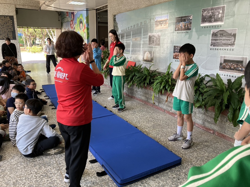 2026-03-17 北屯區 北屯國小 學務處 報導點閱數:62 次教學活動感謝消防局第八大隊北屯分隊的講師,蒞臨北屯國小宣導防火教育。今天主要有四關-第一關「停、躺、滾」。(Stop, Drop, and Roll)這是衣服著火時的關鍵自救口訣。(1) 停下動作,(2) 躺下並用雙手護臉,(3) 來回翻滾壓熄火源。此法適用於大多數火燒身事故,能有效將傷害降到最低。