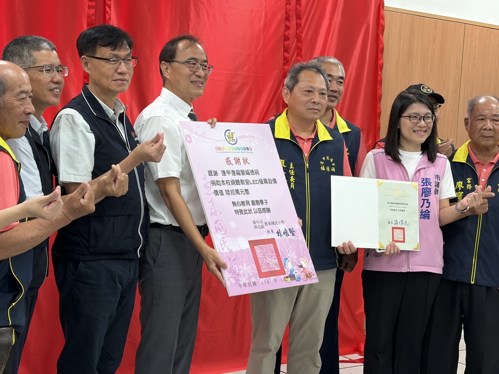 2025-10-13 西屯區 惠來國小 輔導室 報導點閱數:16 次校園新聞逢甲逢福里福德祠不僅熱衷於社會公益也長期關心惠來學子,除積極扶助弱勢家庭之外,亦多次捐資興學,為學校整修專科教室地板、擴增圖書室書櫃。此次捐贈大型LED電視給學校,安裝於視聽教室,此顯示器為最新COB封裝技術產品,尺寸約為高2.2公尺乘以寬 3.8公尺,市價達60萬元,得以取代傳統投影機。這種無縫拼接的高科技電視牆,同時可整合學生人手一台平板電腦投影到電視牆進行互動功能,提升教學靈活性及成效。本校視聽教室使用頻率甚高,除了教學及親師生會議,教育局及社區亦常借用召開重大會議及辦理各項活動,因此新的LED顯示器建置嘉惠層面甚廣。 10月9日(星期四)上午於惠來國小視聽教室進行電視牆啟用儀式,現場由臺中市政府教育局蔣偉民局長、西屯區鄭錫禧區長、林峻堅校長、家長會陳沛瀅會長、逢甲逢福里福德祠廖述宏主委、張廖乃綸議員一行人及各界貴賓共同揭牌,在現場貴賓和師生的倒數聲中,宣布正式啟用LED電視牆。蔣局長表示,臺中市長盧秀燕很重視學生學習環境,市府戮力推動校園教學環境改善及設備優化,為感謝福德祠的善行,特地頒發市府感謝狀,學校也精心準備感謝狀頒贈,向逢甲逢福里福德祠的義舉致謝。 揭牌後隨即讓惠來國小4年4班學生看一段逢甲逢福里福德祠善舉之影片,再由本校資訊組葉俊傑老師帶領進學生進行Kahoot!線上即時教學遊戲。學生陳亭如及張汝璿表示:「這個新電視比起以前的面更大,亮度更亮、顏色好好看,聲音效果也很震撼,感覺好豪華,好吸引人喔,好想常常來這裡上課。