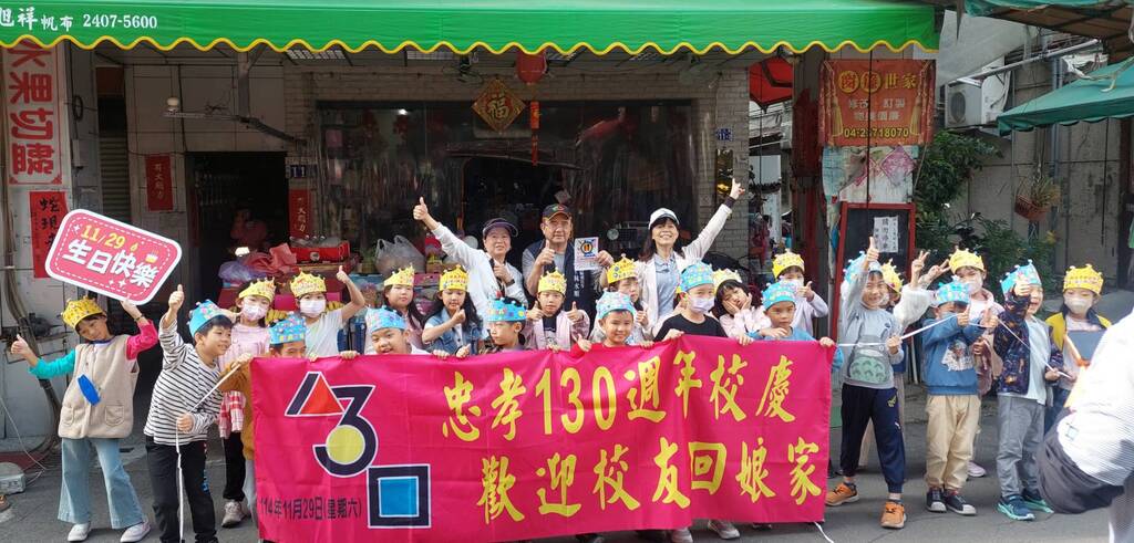 2025-11-27 西區 忠孝國小 忠孝國小 報導點閱數:145 次校園新聞為歡慶忠孝國小130週年校慶,本校11月26日上午盛大舉行「薪傳百卅‧美哉忠孝」社區踩街活動。在家長會劉鈞豪會長的號召下,眾多家長委員與各班家長熱情加入行列,與校長及師長們陪伴幼兒園與低年級親師生,共24個班級、分為7大隊,一同走入社區分享忠孝130歲的生日喜悅。 踩街隊伍沿途前往第一分局、交通分隊、中山地政事務所、西區戶政事務所、三民里廖吳里長辦公室、廣民里林里長辦公室、兒童之家與第五市場自治會李會長聯絡處等多個鄰里機構。孩子們以充滿朝氣的問候、活潑可愛的互動,將忠孝國小的祝福與歡樂帶進社區;而社區居民與各單位也以滿滿的熱情回應,讓整條踩街路線洋溢溫暖與感動。 這次活動不只是校慶的暖場,更是一場富含教育意義的探索旅程。孩子們在隊伍合作中學習分工與互助,在社區互動中展現禮貌與自信,並在快樂的腳步中累積難忘的學習記憶。返回校園後,師長們皆肯定學生的努力與表現,為這段充滿成長與笑容的踩街行程畫下美好的一頁。 展望後續的校慶系列活動~ 忠孝國小將於11月29日隆重舉辦校慶運動會暨園遊會,全校親師生將再次齊聚一堂,以熱情、活力與團結迎接屬於忠孝的年度盛典。同時,忠孝堂溫馨登場的「感恩音樂茶會」,更將以悠揚樂聲滿溢溫暖,為這個130週年的重要時刻注入幸福、希望與感動,讓每位忠孝人都能在美好的共鳴中攜手邁向下一個亮麗百卅。 #忠孝130,幸福you & me #薪傳百卅‧美哉忠孝