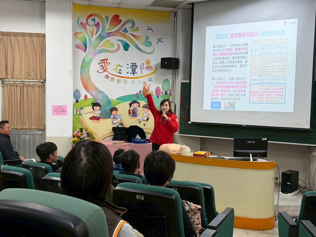 2026-01-08 潭子區 潭陽國小 學務處 報導點閱數:58 次校園新聞當生命面臨突如其來的考驗,每一秒的猶豫都是與死神賽跑。為構築校園安全防護網,提升教職員工應對緊急救護的能力,本校於日前特別舉辦「AED與CPR急救教育研習」,邀請中興保全資深講師廖珮君小姐蒞校指導。 研習現場,廖講師不僅帶來專業的急救器材,更分享了多則感人至深的救命案例。她強調:「我們學習急救,是為了在最無助的時刻,成為身邊夥伴與學生最強大的後盾。」看著投影片上那些因及時施救而重獲新生的面孔,現場教師無不深受觸動,體會到指尖傳遞的每一分力道,都承載著一個家庭的希望。 在廖講師細心的指導下,老師們圍繞著安妮模型,從冷靜評估意識、高聲呼救,到規律而扎實的心臟按摩(CPR)以及AED(自動體外心臟電擊去顫器)的操作,認真練習每一個步驟。汗水在額間流淌,但老師們的神情充滿了專注與堅定。許多老師感性表示,以前對急救總有畏懼,怕做錯,但現在明白「願意出手,就是給生命最好的機會」。 「教育不只是傳授知識,更是守護生命的延續。」這場研習不僅僅是技能的學習,更是一場關於勇氣與大愛的生命教育。透過廖講師專業且充滿溫度的引導,老師們帶著滿滿的收穫與信心回到崗位,共同守護校園裡每一個躍動的生命。