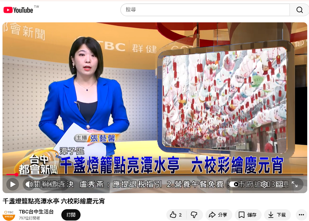 2026-02-24 潭子區 潭陽國小 教務處 報導點閱數:77 次校園新聞台中市潭子區著名的觀音廟「潭水亭」於元宵佳節期間,聯合潭陽國小等六所在地小學及信望愛智能發展中心,共同展出 1,200 盞由學生親手彩繪的燈籠。這場盛會不僅展現孩子們純真的創意,更透過校園與宗教廟宇的結合,讓傳統文化在基層紮根。 校長致詞:文化傳承與教育意義 潭陽國小校長葉建成在接受訪問時特別強調,這項活動具有深遠的教育價值。校長指出:「現在的孩子對於過年與元宵節的真實意義往往不夠了解,透過參與彩繪燈籠,能讓他們知道生活中日子的流逝,更要學會『如何過日子』。」校長認為,文化需要一代傳一代,讓孩子在創作中感受節慶氛圍,是最好的生活教育。當孩子在展區興奮地指著自己的作品說「我的在那裡」時,那份成就感正是教育最美的一刻。 純真創意:馬年吉祥與童趣展現 展覽中可見許多應景的馬年元素,學生在燈面上畫上金元寶,並俏皮寫下「馬上有 money」等祝福語。一位潭陽國小同學分享,自己因為喜歡錢所以畫了金幣與馬,看到作品被選中展出感到很有成就感。 光輝元宵:展期至 3 月 8 日 潭水亭本次共發出 7,500 個燈籠供學生創作,入夜後,精選出的 1,200 盞燈籠同步點亮,景象壯觀。這場融合創意與傳統的美感教育展覽將持續到 3 月 8 日,歡迎民眾前往感受這道溫暖的文化光芒。 #感謝群健記者謝承芳到校採訪 影片來源:https://youtu.be/vpvnWhe7Kfc