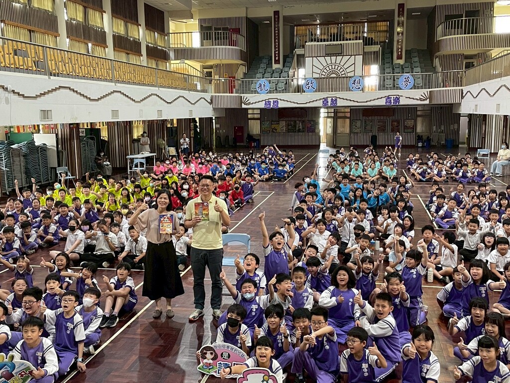 2026-04-11 潭子區 潭陽國小 教務處 報導點閱數:46 次校園新聞為了深耕校園閱讀風氣,潭陽國小於日前舉辦「與作家有約」專題講座,特別邀請知名科普作家、同時也是《科普偵探:達克比辦案》系列的作者胡妙芬老師來到學校,與中年級親師生面對面交流。本次講座以「動物的擬態」為主題,透過生動有趣的圖片與專業解說,帶領現場學生進入大自然奇妙的變裝世界。 活動現場氣氛相當熱絡,胡妙芬老師以淺顯易懂的方式,解析動物如何透過擬態來躲避天敵或獵捕食物,滿足了孩子們對生物界的好奇心。在最受歡迎的「有獎徵答」環節中,學生們參與踴躍,爭相舉手發言。胡老師現場大方送出三本親筆簽名書及精美小卡,鼓勵孩子們持續保持對科學探索的熱情。 在 Q&A 互動時段,潭陽小將們展現了對《達克比》系列的深度熱愛與獨特觀察力。學生提問五花八門,甚至有孩子天真地問道:「達克比什麼時候會結婚?」引發全場一陣笑聲。胡老師也耐心地一一解答孩子們對於書中情節與角色的疑問,氣氛既溫馨又活潑。 潭陽國小表示,透過與作家近距離的接觸,不僅提升了學生的閱讀動機,更激發了他們對自然科學的興趣。這場結合知識與趣味的饗宴,在師生大合照的歡笑聲中圓滿落幕,為校園留下難忘的書香回憶。