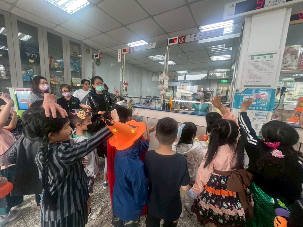 2025-11-03 梧棲區 中正國小 教務處 報導點閱數:166 次校園新聞有別於傳統的校內活動,梧棲中正國小本學期「國際新視野」課程設計的亮點在於「真實互動」。利用既定節日~萬聖節踩街走讀,打造「行走的英語教室」,低年級學生勇闖超商、郵局高喊「Trick or Treat!」,親師攜手落實交通安全教育。學童們的踩街隊伍首站開拔至社區便利商店。儘管面對熟悉的店員,孩子們還是必須鼓起勇氣,大聲說出 "Trick or Treat!" (不給糖就搗蛋!) 與 "Happy Halloween!" (萬聖節快樂!)。 緊接著,隊伍轉往大庄郵局。孩子們的創意裝扮與響亮口號,讓平日嚴肅的郵局充滿了歡笑聲。郵局人員也熱情地準備了糖果,回應孩子們的英語問候。Cindy老師表示:「語言學習的最終目的是溝通。十二年國教強調『情境脈絡』,當孩子發現『原來英語真的可以在郵局和便利商店使用』時,那份成就感遠勝過一百次的課堂練習。」 此次活動不僅是英語課,更是一堂紮實的「交通安全實踐課」。在出發前,學校已進行完整的交通安全宣導。在踩街過程中,師長與家長志工們全程引導,確保孩子們在行走時遵守秩序、注意左右來車,並確實行走於天橋、斑馬線。 校長蔡淑芬強調:「安全只有100分,沒有99分。『行的安全』是生活教育的重中之重。在我們的關注教導中,孩子們才能夠安全放飛。」我們刻意選擇步行至社區據點,目的就是讓孩子親身實踐『停、看、聽』。從學校到郵局的這段路,就是最生動的交通安全教材,正完美體現了素養導向的『做中學』精神。