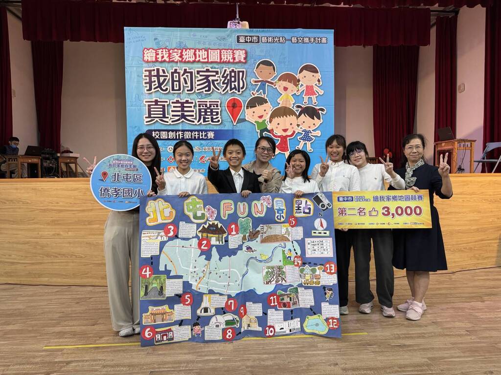 2025-12-15 北屯區 僑孝國小 教務處葉兪潔 報導點閱數:262 次校園新聞臺中市「藝術光點-藝文攜手計畫」決賽近日圓滿落幕,僑孝國小六年級學子在「我的家鄉真美麗—家鄉地圖繪製」項目中表現搶眼,透過兩組別出心裁的戲劇演出,將故鄉北屯區的人文特色與歷史知識活潑呈現,雙雙贏得佳績。 僑孝國小六年級參加決賽的兩組隊伍,皆巧妙地將家鄉地圖的元素融入戲劇表演中,讓生硬的地理知識變得趣味盎然。 🏆 604 班:「機智問答」闖關奪銀 604 班的同學以一齣「機智問答闖關戲劇」參賽,他們設計了一系列與北屯區相關的謎題與挑戰,觀眾必須透過闖關過程來認識北屯的人文特點。整場表演節奏明快、互動性強,展現了高超的臨場反應與默契,最終以精采的表現獲得該組第二名的殊榮。 🌟 603 班:「遊覽北屯」戲劇呈現在地風采 603 班則採取了「戲遊北屯」的戲劇形式。學生們扮演遊客,沿途「發現」並介紹在地獨特的景點與歷史,將他們親身探訪北屯後所獲得的有趣知識,透過生動的對話和肢體語言介紹給評審與觀眾,同樣獲得一致好評,勇奪該組第四名。 在指導教師604佳怡老師及603正鴻老師的陪伴下,孩子們不僅展現了卓越的戲劇天賦,更透過藝術活動深化了對家鄉的認識與情感。此次競賽的佳績,不僅是學生的榮耀,也是學校推動在地文化教育的具體成果。