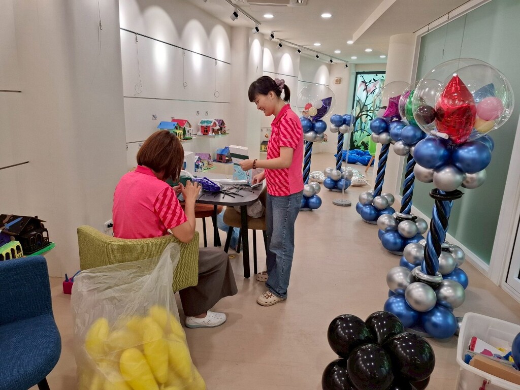 用氣球「揪」在一起,大墩志工愛不漏氣