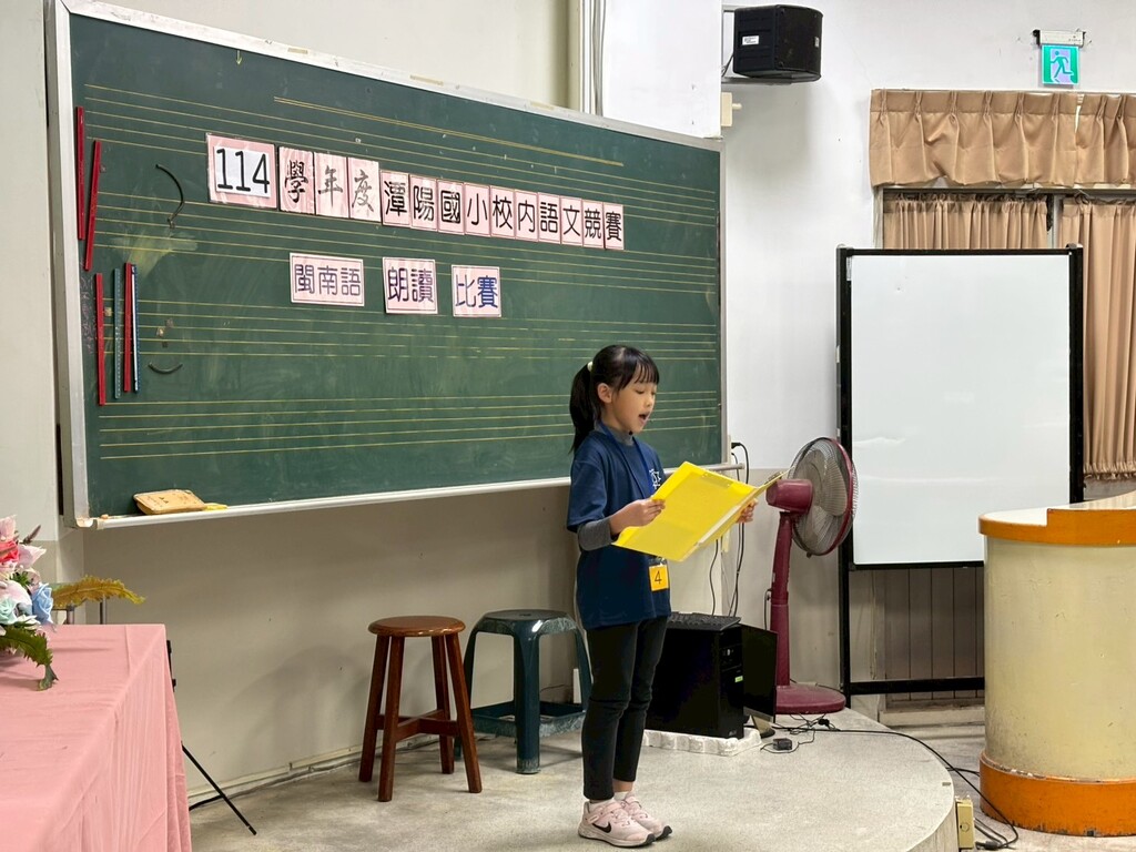 2025-12-30 潭子區 潭陽國小 教務處 報導點閱數:68 次校園新聞校內語文季熱鬧登場,本校特別舉辦四、五年級「閩南語朗讀比賽」,讓孩子在朗朗讀聲中親近母語、傳承文化。比賽當天,參賽學生站上講台,雖然神情略顯緊張,卻仍用最真誠的聲音,一字一句讀出對土地、家人與生活的情感。熟悉的閩南語在教室裡迴盪,彷彿喚起長輩的叮嚀與童年的記憶,也感動在場的師長與同學。透過朗讀,不只是語言能力的展現,更是文化認同的扎根。學校期盼藉由語文季活動,讓孩子勇敢開口說母語,讓閩南語在校園中持續被聽見、被珍惜,代代相傳。