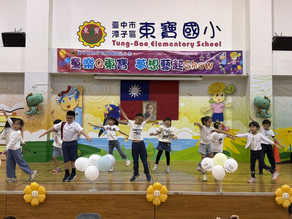 2026-04-02 潭子區 東寶國小 李季芳 報導點閱數:66 次校園新聞為歡慶兒童節的到來,東寶國小配合即將到來的80週年校慶,以「童樂Q東寶‧夢想藝起Show」為主題,辦理學生才藝Show表演活動,每個東寶的孩子勇敢表現自我才華,樂於面對挑戰,而本校直笛隊、流星球隊、電子鼓社團及扯鈴社團也帶來專業且精湛的表演,內容豐富多元,才藝秀活動結束後緊接著辦理環保教育二手物品尋寶及租稅宣導發票兌換活動,藉由多元活動讓孩子從做中學、玩中學,激發潛能,讓每個東寶孩子都能在快樂中學習、關愛中健康成長。