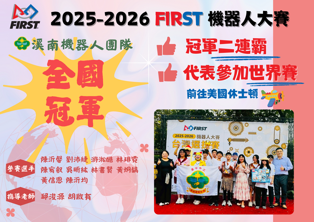 2026-04-06 烏日區 溪南國中 教務處 報導點閱數:74 次榮譽事蹟誠摯感謝 ~ 「 臺中市精密工業天上聖母功德會 」 贊助本校「 機器人團隊 」! 參加 2026 FLL Challenge 美國休士頓機器人世界賽 的相關經費 ✨ 因為有社會各界的支持與鼓勵, 孩子們才能勇敢逐夢、站上國際舞台! 用智慧與創意展現學習的成果,也為國家與學校爭光 🤖🏆 這份溫暖的力量,不只是資源的挹注, 更是對孩子們最大的肯定與祝福 ❣️ 讓我們一起為孩子們加油打氣 💪 期待他們在世界舞台發光發熱 💫 #感恩有您 #逐夢國際 #機器人教育 #為孩子點亮未來 #溪南之光