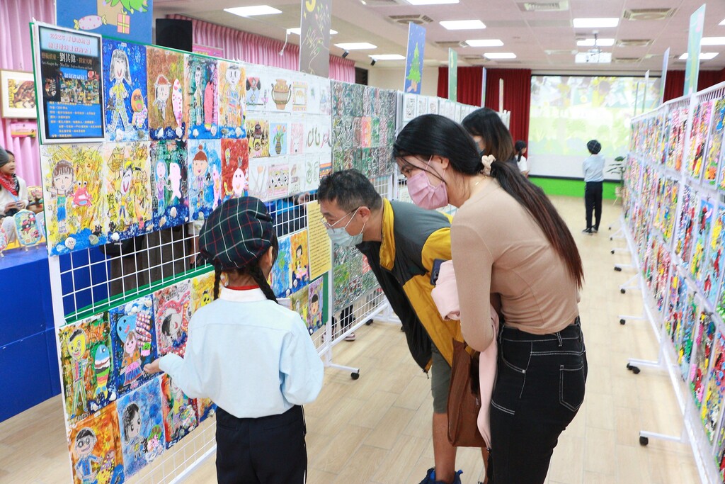 2025-12-24 南區 樹德國小 教務處 報導點閱數:141 次美感-其他校園內近日掀起一陣藝術熱潮,配合廣達《游於藝》『跟著老頑童探險去!—劉其偉藝術特展』,一群訓練有素的「導覽小尖兵」以熱情的口吻向嘉賓介紹他們精心創作的藝術作品。本次展覽以藝術家劉其偉(劉爺爺)的創作為靈感,將學生的創意與自然保育議題深度結合。 奮鬥的冒險者:從自畫像到海洋探索 在「奮鬥不懈的冒險者」主題中,學生們首先完成「自畫像」,透過水彩點染技術與色系概念,在老師指導下利用膠礬水與礦物顏料雲母,讓作品色彩更加鮮艷奪目。另一組作品「小孩與海」則極具巧思,學生利用白膠描邊後再以旋轉蠟筆著色,創造出如海水噴濺的特殊視覺效果,底板更採用氣球、梳子、塑膠袋等多元工具塗抹壓克力顏料,呈現出個人色彩鮮明的海洋世界。 保育大使:守護瀕危物種與婆憂鳥 針對「關愛自然的保育大使」主題,學生展現了強烈的生態關懷: * 拙木鳥與婆憂百態:學生以木頭創作劉爺爺筆下經典的「婆憂鳥」,或利用擀麵棍將紙黏土製成底板,並以「七本」工具戳出細膩的羽毛紋路。 * 瀕臨絕種的動物:孩子們在暑假蒐集資料,利用粉蠟筆與棉花棒創造出「暈染」效果,將瀕危動物貼在水彩背景上,傳達對地球生態的守護之心。 * 動物方城市與紙漿藝術:作品「動物方城市」將動物仿畫與城市街景結合,加入禪繞畫元素;「嗨!動物們」則創新使用浸濕的衛生紙混合壓克力顏料製作紙漿,捏塑出具立體感的動物型態。 探險與創新:從原民圖騰到浩瀚星空 除了生態議題,學生也向「超級探險家」劉爺爺學習。在「原住民圖騰」展區,學生利用珍珠板進行版畫創作,透過滾輪與馬連壓版,親手刻劃台灣原民文化的線條。 在「熱情創新的藝術頑童」展區中,四年級課照班學生則挑戰了難度較高的「12星座」膠彩畫。他們利用嬰兒油與墨汁在水面製造漩渦紋路(浮水染),並在畫板上層層堆疊礦物顏料,最後灑上白色顏料模擬繁星,營造出星光閃爍的深邃夜空。 校犬妞妞的溫馨守護 值得一提的是,多數作品中都隱藏著學校校犬「妞妞」的身影。學生們將對妞妞的喜愛轉化為創作動力,不論是在「聖誕小夜燈」中與婆憂鳥一同戴上聖誕帽,還是出現在瀕危動物的畫作中,妞妞已成為學校推動生命教育與自然保育的最佳代言人。 這場藝術饗宴不僅展示了藝術技法的傳承,更體現了學生對環境的觀察與關懷。