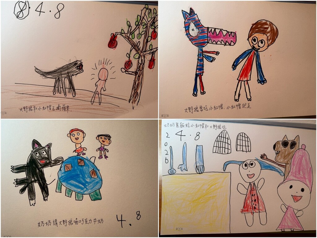 2026-04-17 西區 中正國小 莊依芳、羅巧玲 報導點閱數:19 次教學活動以影子戲的方式演出「掉出書裡的大野狼」,故事結局是開放式的,大野狼跟小紅帽一起回奶奶家,回家後會發生什麼事呢?請孩子們當一個小作者,幫故事延續下去。有孩子畫出回到奶奶家後,奶奶煮菜給大野狼吃;有孩子畫大野狼最後變成奶奶的寵物;也有孩子畫出大野狼要吃掉小紅帽,小紅帽很機靈的跑掉..,孩子們幫故事進行的續寫內容,很精彩也富有創意。 除了故事續寫,本週學習單要請孩子們和家人一起動腦想一想,如果你是作者,大野狼可能會跑到什麼書裡?在那本書裡發生什事呢?透過故事續寫與改寫,讓孩子們動腦思考,提升孩子們的敘事與圖像表徵能力。