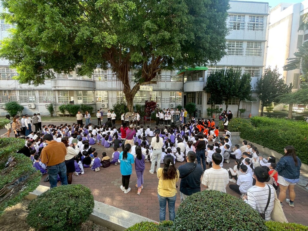 2025-12-12 潭子區 潭陽國小 教務處 報導點閱數:27 次校園新聞本校一年一度的《校園音樂祭》活力登場!這兩日由 四年級擔綱主秀,小小音樂家們在大榕樹下展開精彩演出。開場即由薩克斯風演奏〈風來了〉,悠揚旋律在校園間穿梭,彷彿真的吹起一陣溫暖的風,也把大家的注意力一次吸引到舞台前。 今日到場欣賞的是 一、二年級的小觀眾。本以為他們會靦腆害羞,沒想到音樂一下,他們立刻化身迷你粉絲團,眼睛盯著台上,身體也跟著節奏晃動。尤其在薩克斯風高音亮起時,台下傳來一陣「哇!」的驚嘆,比風還快,瞬間點燃整場氣氛。 最後登場的是全體齊聲的大合唱〈我的朋友在哪裡〉。孩子們用最真誠的聲音,唱出友情與勇氣,台下的一、二年級也情不自禁跟著輕聲哼唱。有的小觀眾還主動舉手參加主持人的即興互動遊戲,笑聲此起彼落,把大榕樹下變成最溫暖的音樂角落。 主持群穿著亮眼橘色服裝,精神飽滿,帶動全場節奏;觀眾席上,低年級同學則展現最可愛的專注與投入,讓整場音樂祭充滿童趣與感染力。 活動在全場歡呼與合影中劃下句點。雖然表演結束,但小朋友興奮的情緒仍然延續,一路聊著最喜歡的段落,甚至已經開始想像明年輪到自己登台的模樣。