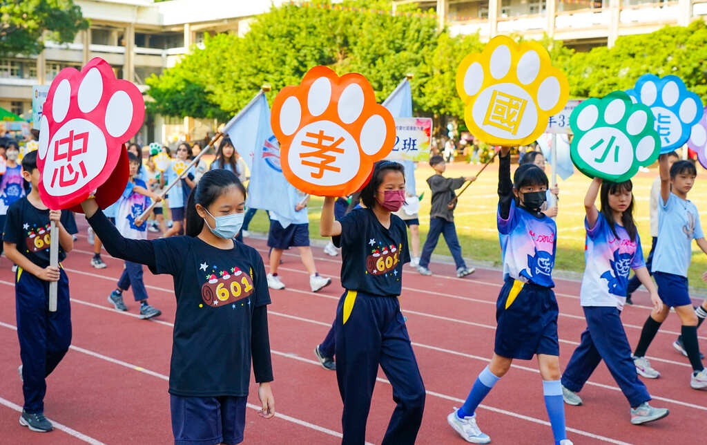 2025-11-29 西區 忠孝國小 學務處 報導點閱數:63 次校園新聞忠孝國小130週年校慶運動會,五年級大哥哥、大姊姊進場。 五年級,有活力,為校爭光拼第一。 女生知性,男生帥氣,充滿朝氣最美麗。 看過來、看過來! BLACK PINK、原子少年,全部都在五年級。 比賽跑、比接力,舞動青春、揮灑汗水, 我們充滿默契,樣樣得第一。 交朋友、敬師長,我們就像一家親。 有歡笑,有淚水,回憶盡在忠孝裡。 #忠孝130