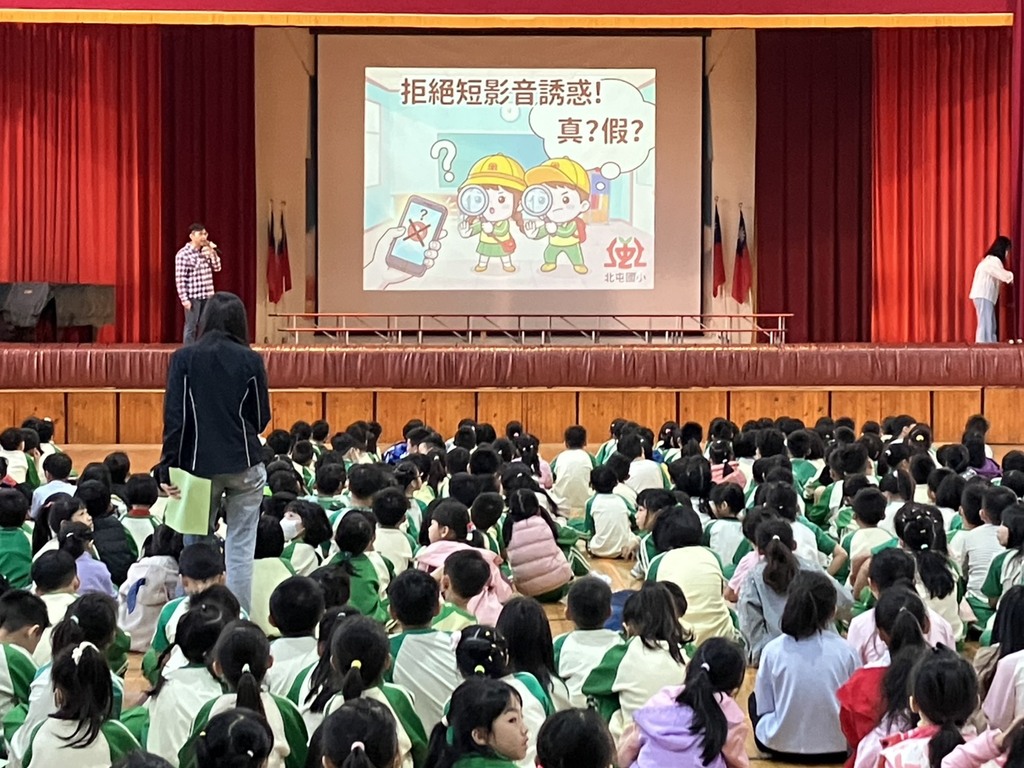 2026-02-24 北屯區 北屯國小 學務處 報導點閱數:84 次教學活動「學生在短影音與社群平臺正在面臨的真實風險,從跟風挑戰、自殺自傷事件,以及注意力被快速切割、假資訊與詐騙擴散….」開學乍始,校長主持學校開學典禮暨友善校園宣導。114學年度第二學期宣導主題為「拒絕短影音風險:別被演算法牽著走,思辨、查證、要求助」,並融入學期中其他校內課程或活動,以營造正向學習風氣,維護友善校園環境。