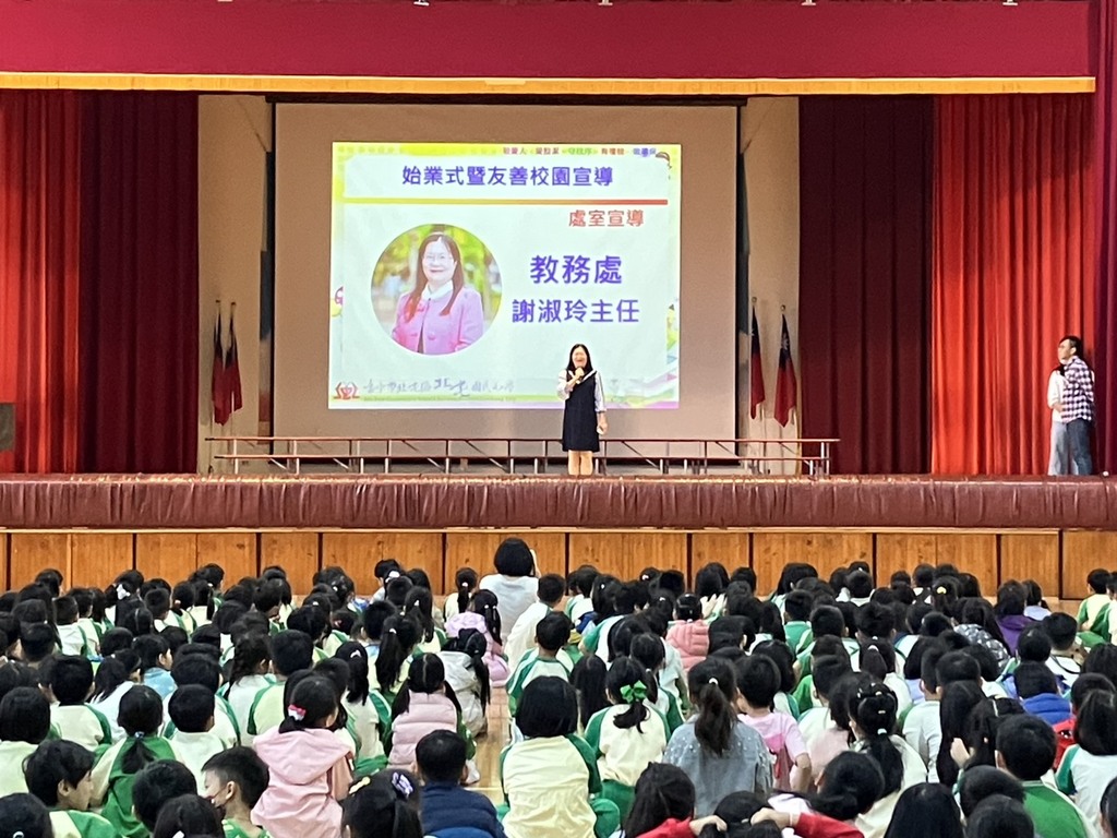 2026-02-24 北屯區 北屯國小 學務處 報導點閱數:71 次教學活動開學乍始,校長主持學校開學典禮暨友善校園宣導。114學年度第二學期宣導主題為「拒絕短影音風險:別被演算法牽著走,思辨、查證、要求助」,學務處張主任強力宣導主題,並叮嚀同學網路正用,融入學期中其他校內課程或活動,以營造正向學習風氣,維護友善校園環境。