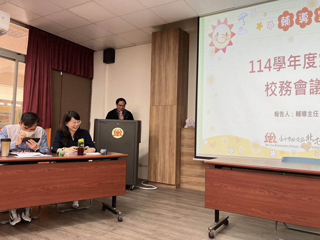 2026-02-27 北屯區 北屯國小 學務處 報導點閱數:62 次教學活動感謝北屯國小家長會廖會長蒞校參加114學年度第二學期北屯國小校務會議,廖會長代表家長感謝所有教職員工,盡心盡力對北屯國小學生的奉獻,共同建構教學成效卓著、五力全開的幸福學園。校務會議是台灣中小學最高決策機制,依據《國民教育法》召開,每學期至少召開一次,負責議決校務發展、重要章則、預算等重大事項。
