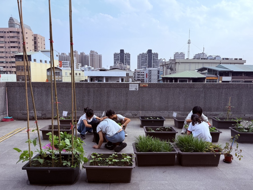 2026-04-13 北屯區 北屯國小 學務處 報導點閱數:102 次教學活動北屯國小推行食農教育不遺餘力,將萌學樓的四樓空間活化運用,成為「屋頂上的綠菜園」。屋頂菜園是一種將都市閒置空間轉化為綠色農場的永續做法,具備隔熱降溫、減少冷氣用電量、綠化環境及生產安心蔬果的優點。今天自然老師指導一群「抓蟲特攻隊」,先觀察記錄菜株的成長狀況,接著就開始幫菜株除除嘍!