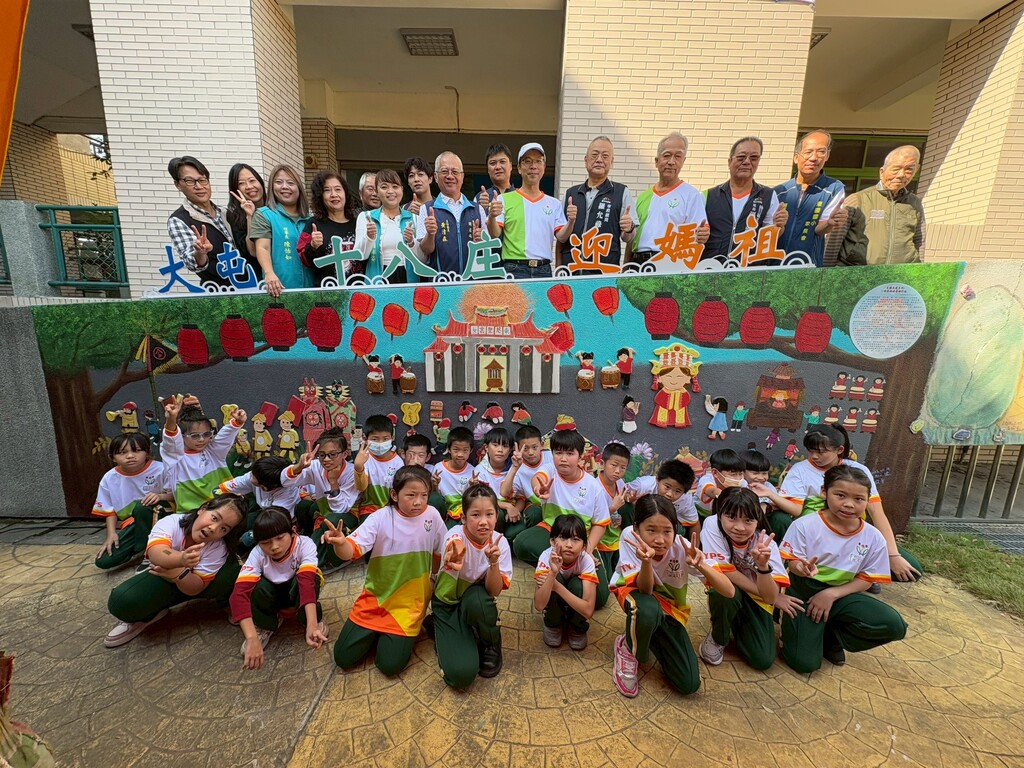 2025-12-17 烏日區 東園國小 教務主任李彥典 報導點閱數:47 次美感-陶藝每年總有這麼一個時節,當「東女慈聖宮十八庄迎媽祖」的鑼鼓聲響起,整個地區便隨之沸騰。這不只是一場宗教慶典,更是一場流動的盛宴,串聯起跨越庄頭的情感、緊扣著世代傳承的歷史記憶。那份虔誠與熱鬧,是溫暖的家鄉風景之一。 這份感動,如今在東園國小,被一群孩子用最純真的方式,凝結成永恆的藝術。 映入眼簾的是一幅充滿童趣與溫暖的畫作。底圖是藝術家吳瑜華老師的創作,在她的筆下,土地上的物產,那些稻米、花卉、蔬果……,象徵著媽祖庇佑下的豐饒大地。畫中一面飄揚的大旗,更是那面已有超過150年歷史的「同治拾年下哩仔庄迎媽祖大旗」,靜靜展現著信仰的悠久與厚度。 然而,這幅畫作最動人之處,在於「傳承」的實踐。 這項深具意義的藝術傳承計畫,源於東園國小湯正茂校長的教育遠見,他將在地文化視為孩子們成長中不可或缺的養分。在東女慈聖宮主委黃清森先生的全力支持,以及陶板製作陳維銓老師及美勞老師陳郁雯的專業指導下,這幅美麗的畫作,交到了東園國小第64屆畢業生們的手中。 孩子們用他們的巧思,親手將平面的畫作轉化為立體的陶板藝術。於是,畫中的風景活了過來,莊嚴的廟宇主體、威武的千里眼與順風耳將軍、熱鬧的陣頭隊伍,甚至還有那虔誠跪拜的小小身影……,每一個陶件,都是孩子們對家鄉信仰的親手詮釋。這不再只是一件藝術品,更是教育的真實實踐。 凝視著這幅作品,我們能讀到土地的祝福,也能看見文化的延續,從堃誠雷射及元力工業社慷慨捐贈的「十八庄迎媽祖」雷刻字體,到每一片孩子們親手捏製的陶板,衷心期盼這幅畫能化為孩子們的共同記憶,並將這份美好的文化在心中點燃,世世代代延續下去。