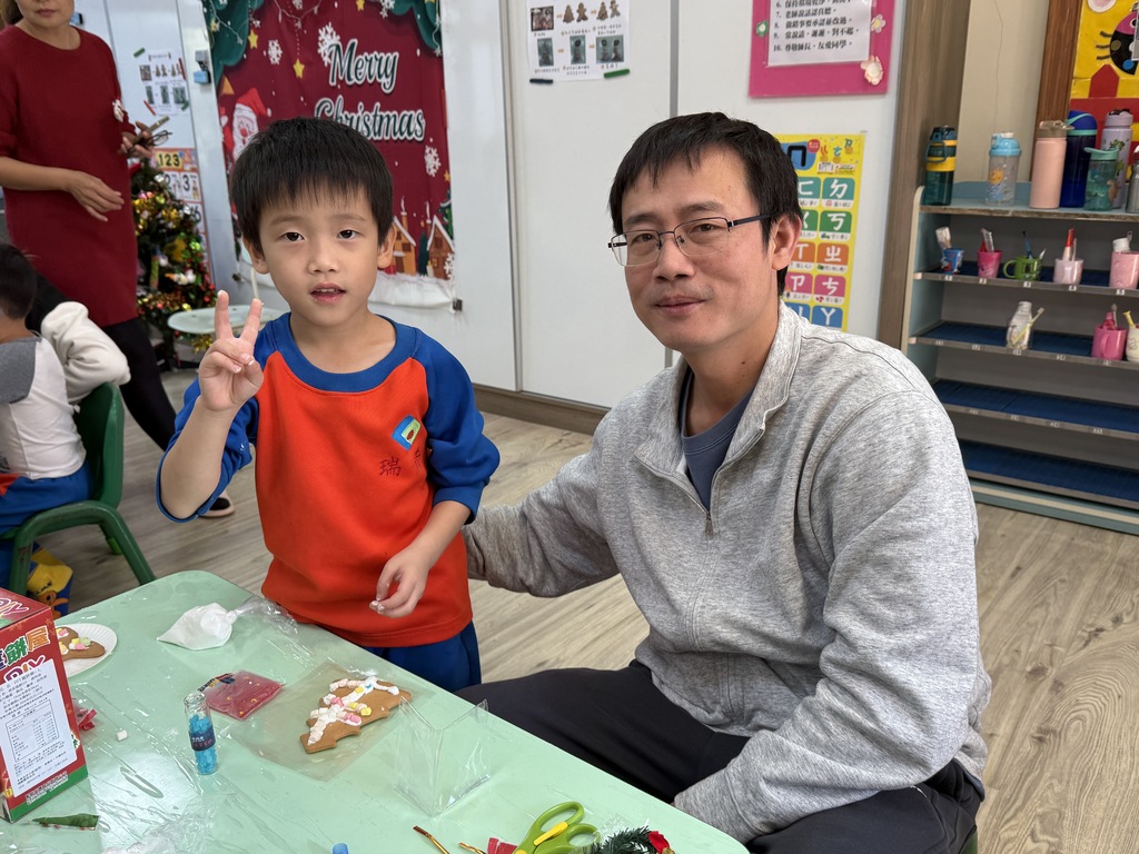 2025-12-17 大肚區 瑞井國小 陳淑華 報導點閱數:54 次校園新聞今天幼兒園辦理聖誕節親子活動,我們邀請馬力歐體能工作室進行親子體能遊戲,一開場的(快樂出發)就炒熱現場的氣氛,接著一連串的體能活動讓幼兒體驗聖誕球球的樂趣。在體能遊戲中透過親子互動增進情感也促進幼兒的感統發展,體能遊戲結束後小朋友期待已久的聖誕雪人出現在會場,大家驚聲連連,還和聖誕雪人一起合照,活動最後進行親子聖誕手作時間!這次餅乾DIY的是進行聖誕樹和薑餅人的創作,先用糖漿畫出想要的線條,在裝飾佈置上可口的餅乾球和小糖果,獨一無二的聖誕餅乾就完成啦!今天要將濃濃的聖誕氣氛帶回家,也祝福大家聖誕快樂。