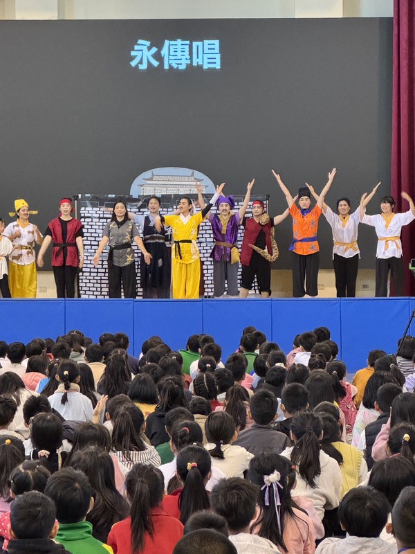 2025-12-17 太平區 新平國小 教務處 報導點閱數:168 次校園新聞2025年,兒童音樂劇《最好的師傅》於新平國小盛大演出,這是一場充滿笑聲與感動的生命教育饗宴!讓孩子們在歡樂的氛圍中找到自信與力量,學會用愛面對生命的挑戰。 《最好的師傅》由愛閃亮彩虹愛家音樂劇團推出,故事背景設定在明朝末年的白羊城。面對惡名昭彰的赤蛇派來襲,村民們陷入恐慌之中。此時,一位武功高強、品格高尚的黃師傅出現,他不僅教導村民武藝,還以因材施教的方式,帶領大家學習勇氣、信心與團結,傳遞「真正的師傅,不只是教本事,更是引導人生方向」的重要價值。 學生林正謙說:「我覺得徒弟們都很努力練功 ,有那種不放棄的決心。另外,就算徒弟再怎麼被別人看不起或者是沒有什麼力量,但是黃師父還是會一直努力的教導他們,並且相信徒弟絕對會不放棄,黃師傅是最好的師傅。」學生林鈺庭說:「我看這齣音樂劇的時候 ,感覺很興奮。黃師傅他召集非常多的村民來抵抗壞人,讓我覺得正義是比較厲害的 ,能戰勝邪惡的勢力!黃師傅在徒弟受到挫折的時候 ,鼓勵他 、幫助他,我覺得他是最好的師傅。」學生夏忠琥印象最深刻的是:黃師傅會針對每個徒弟的問題 ,給他們解決的方法,讓他們可以改善自己的缺點 、讓自己變得更好。所以他們最後一起保護了白羊城,完成了一件偉大的事。 本次演出由來自不同學校的志工、長期投入生命教育推廣的「故事媽媽」擔綱演出,透過生動的角色、淺顯易懂的情節與互動式演出,引導孩子在歡笑與感動中思考:誰是生命中的好師傅?什麼才是真正的力量? 新平國小特別邀請「愛閃亮彩虹愛家音樂劇團」蒞校演出,旨在推廣生命教育與品格教育,讓孩子們在校園中自然接觸這些核心價值,培養正向品格與同理心。家長會長湯展智表示:「在《最好的師傅》音樂劇中,體驗勇氣、愛與學習的旅程,感受孩子們專注投入、熱情回應的動人畫面!」李秀櫻校長認為:透過這齣劇,傳達傳承、感恩、勇氣、夢想、堅強等正向價值,讓孩子體悟到在夥伴與師長協助下,即使力量微小也能克服挑戰,為他人帶來祝福。」