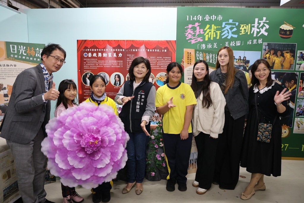 2025-11-30 西屯區 東海國小 輔導主任張郁棻 報導點閱數:84 次校園新聞東海國小榮獲臺中市教育局114年度「營造美的角落」公私協力合作「藝術家到校」計畫補助,日前教育局在文化資產園區-1916工坊舉辦10所學校的聯合成果展,並邀請藝術家們到場接受表揚。東海國小已是連續第三年榮獲此計畫案之補助,今年度以舞蹈課程為規畫主軸,並將課程教授對象擴及到全校24個班共660多位的學生,邀請長期合作的舞蹈藝術家楊婷妘老師擔任外聘藝術家,並搭配徐瑋翊老師、黃育倫老師共同指導。 藝術家楊老師在這次的計畫案中為東海國小創作了三首不同風格的舞碼。低年級的「繽紛夢幻舞樂園」融合了歐洲的宮廷舞,開頭第一段先以典雅的宮廷舞舞步開場,中間音樂轉折後進入第二段,轉換為活潑動感, 完全嶄露低年級學生的活潑可愛;中年級的「舞力全開閃亮亮」則是搭配許多不同顏色的彩球,主要展現學生的自編創意和整體協作效果,讓表演成果能充滿層次與動感;高年級的「叢林健康動起來」則是融合了非洲舞蹈的元素,巧妙的融合進原本台灣小學生健身操當中,藉由強勁的節奏與奔放的舞步,充分展現生命力及高年級的活力及熱情。 今年度藝術家到校的成果展從11月27日開幕式之後,將在1916工坊持續展出到12月21日,共計有10所學校的學習歷程和美感成果呈現給大家,歡迎各級學校師生及市民朋友們抽空前往觀展,來趟美感的巡禮。