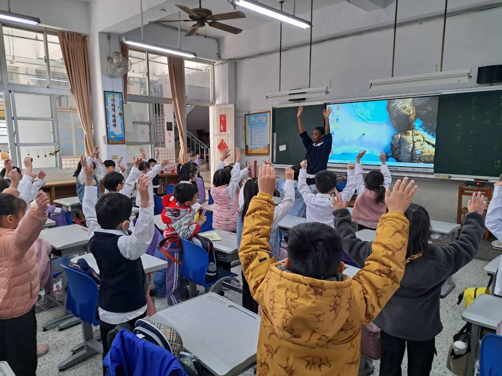 2026-03-13 潭子區 潭陽國小 教務處 報導點閱數:45 次校園新聞為了增進學生對英語學習的興趣,本校特別邀請外籍教師 Sophie 走進 101 班教室,透過全球知名的經典繪本《The Very Hungry Caterpillar》(好餓的毛毛蟲),為孩子們帶來一場充滿歡笑與互動的英語故事饗宴。 「Simon Says」熱力開場,點燃學習引擎 活動一開始,Sophie 老師先以節奏明快的 「Simon Says」(賽門說) 互動遊戲拉開序幕。透過簡單的肢體指令,如 "Simon says, touch your nose" 或 "Simon says, jump," 學生們在歡快的氛圍中快速進入全英文的學習情境。這不僅訓練了孩子們的聽力敏銳度,也讓現場氣氛瞬間沸騰,每位小朋友都張大雙眼,期待著接下來的故事發展。 繪本世界動起來:立體食物模型增加五感體驗 當大螢幕秀出色彩繽紛的毛毛蟲時,Sophie 老師以生動的口吻帶領學生進入毛毛蟲的成長世界。為了讓抽象的單字具象化,Sophie 特別準備了精緻的食物模型。 隨著故事推進,從周一的蘋果到周六的大餐,Sophie 老師不時從「驚喜袋」中拿出各種模型。當巨大的草莓、梨子與蛋糕模型出現在眼前時,學生們發出陣陣驚呼。Sophie 更親切地邀請學生上台互動,讓孩子們親手摸摸模型,甚至模擬毛毛蟲「穿過」食物的動作。這種將視覺、聽覺與觸覺結合的教學方式,讓 101 班的學生在潛移默化中記住了各種食物的英語表達。 從聽故事到愛英語:啟發跨文化溝通力 101 班的導師表示,透過外師入班的互動,學生能親身感受到英語並非只是書本上的考題,而是生活中溝通的工具。看著毛毛蟲最終蛻變成美麗的蝴蝶,孩子們不僅學到了生命教育與計數概念,更在 Sophie 老師的引導下,建立起開口說英語的自信。 這場結合遊戲、故事與實物操作的英語課,在師生依依不捨的笑聲中畫下圓滿句點。校方未來也將持續推動多元外師課程,讓孩子們在輕鬆有趣的環境下,擁有接軌國際的視野。