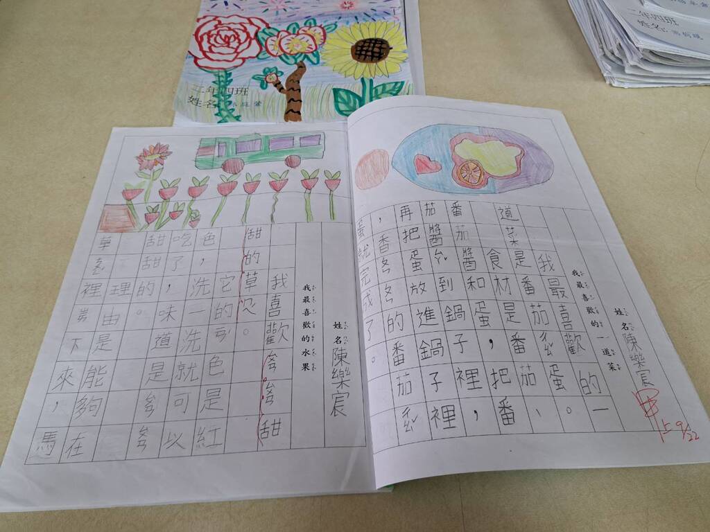 2026-02-04 潭子區 潭陽國小 教務處 報導點閱數:65 次校園新聞為厚植學生語文基礎,並鼓勵孩子記錄生活之美,本校教務處於本週辦理一至三年級語文作業抽查活動。透過對語文練習本以及各式寫作作業的檢閱,校方不僅看見了孩子們在字裡行間的成長,更發現了許多令人驚喜的童趣與創意。 一、 從字跡看心跡:低年級的成長足跡 在本次抽查中,低年級學生的表現格外引人注目。一年級的陳同學在作文練習中,以稚嫩卻工整的字跡寫下《我最喜歡的一道菜—番茄炒蛋》。文中詳盡記錄了烹飪過程:「先把蛋放進鍋子裡,再把番茄放進鍋子裡,香噴噴的番茄炒蛋就完成了。」簡單的語句中流露出對生活的觀察力。 此外,另一位同學在《我最喜歡的水果》中,將草莓形容為「甜甜的味道」,並用心地在稿紙上方繪製了色彩斑斕的花圃與火車。這類「圖文並茂」的作業形式,展現了低年級孩子如何將語文與藝術結合,表達內心純真的情感。 二、 親師合作:聯絡簿上的溫度 作業抽查不僅是學生的展現,也是親師交流的縮影。許多導師在學生的生活札記下給予了溫暖的鼓勵,這些紅筆批改的痕跡,成了孩子進步的最大動力。透過作業抽查,學校能確保每位學生的學習進度,並及時給予需要的孩子個別指導。 三、 語文紮根:開啟夢想的鑰匙 「語文是所有學科的基礎。看到孩子能從寫好一個字,到完成一篇通順的文章,這就是教育最動人的風景。」校方強調,未來將持續推動多元寫作活動,讓文字不再只是生硬的練習,而是孩子與世界對話的橋樑。 透過這次抽查,全校親師生共同見證了孩子們在語文大海中揚帆起航的勇氣。每一份被細心批閱的作業,都承載著家長的期待、老師的苦心以及孩子們閃閃發亮的未來夢想。