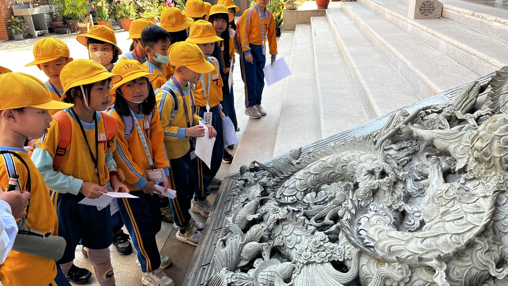 2026-03-27 北區 太平國小 教務處 報導點閱數:52 次校園新聞臺中市北區太平國小三年級近日展開一場別開生面的社區踏查課程,走進在地重要信仰中心——元保宮。孩子們不再只是課本上的讀者,而是用雙腳丈量土地、用眼睛細緻觀察文化、用心深刻感受歷史,從廟宇建築與神祇故事中,讀懂屬於家鄉的深刻記憶與文化底蘊。 在專業導覽老師的引領下,學生們專注聆聽保生大帝、五斗星君與神農大帝的傳說故事。神祇不再只是遙遠的存在,而是承載著先民信仰與生活智慧的重要文化象徵。透過不同時期神像的觀察,孩子們發現神像造型與工藝風格的細微變化,也進一步理解時代背景如何影響信仰的呈現,體會在地文化與社區發展之間的緊密連結。 踏查過程中,最吸引孩子目光的,莫過於廟前氣勢磅礡的九龍柱與精緻細膩的御路石雕。學生們一邊驚嘆,一邊細心數著龍的數量與姿態。「老師,這裡真的有九條龍!而且每一條都長得不一樣!」一名學生興奮地說。導覽老師也適時引導學生觀察御路上的圖騰,解說其象徵的意義,讓孩子理解這些雕刻不單只是裝飾作用,更蘊含著祈福、守護與權威等深層文化意涵。 除了建築之美,色彩繽紛的交趾陶更讓學生驚豔不已。栩栩如生的人物與神獸,在陽光下閃耀著細膩光澤,孩子們紛紛駐足欣賞。一位學生分享:「我以前只覺得廟很漂亮,但今天才知道,每一個裝飾都有故事,真的很像在看立體的歷史書!」另一位學生則說:「我最喜歡數龍的活動,感覺像在解謎,原來文化可以這麼有趣!」 這場走進元保宮的學習之旅,學生不僅學習到廟宇建築與傳統工藝的文化價值,也在潛移默化中,在心中悄悄種下理解與尊重的種子,逐步培養出尊重多元信仰的成熟態度。當課程走出教室,學習便有了溫度;當孩子走進社區,世界也變得更加寬廣而深刻。 校長曾娉妍表示,「社區就是最真實的教室,文化就是最動人的教材。我們希望孩子不只是知識的接收者,而是文化的理解者與傳承者。透過實地踏查,孩子能看見家鄉的美、聽見土地的故事,進而培養深厚的認同感與包容力,這是培養公民素養的重要一環。」