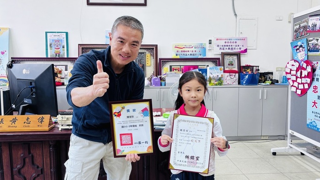 2025-12-05 西區 大勇國小 幹事 周秋華 報導點閱數:58 次榮譽事蹟恭喜! 本校鍾瀅羽同學參加兒童繪畫比賽獲獎!