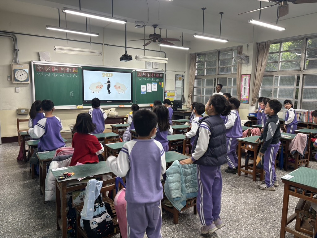 2025-12-19 潭子區 潭陽國小 教務處 報導點閱數:115 次校園新聞外師 Sophie 今日走進208教室,帶來一堂充滿笑聲與驚喜的英語說故事課,主題是深受孩子喜愛的繪本《Bark, George》。一進教室,Sophie 便抱著可愛的布偶登場,瞬間吸引全班目光,孩子們眼睛發亮、坐姿端正,準備迎接故事冒險。 隨著故事展開,Sophie 用生動的表情、誇張的肢體動作,帶領學生認識 George 發出各種「不一樣的叫聲」,孩子們也忍不住跟著學狗叫、貓叫,教室裡此起彼落的聲音,彷彿變成一座歡樂小動物園。Sophie 邀請學生上台互動,親手操作布偶,實際「演」出故事情節,讓英語不再只是課本上的文字,而是能看、能聽、能玩的真實體驗。 故事結束後,活動還沒停歇!Sophie 接著帶動唱英語歌曲,搭配簡單動作,全班一起站起來唱唱跳跳,氣氛熱鬧又溫馨。孩子們在音樂中自然開口說英語,笑聲不斷,也在不知不覺中累積語言自信。 透過這次外師入班活動,208 的學生不僅享受了一場精彩的故事時光,更體會到學英語可以這麼有趣。歡笑聲中,學習的種子也悄悄在孩子心中發芽。